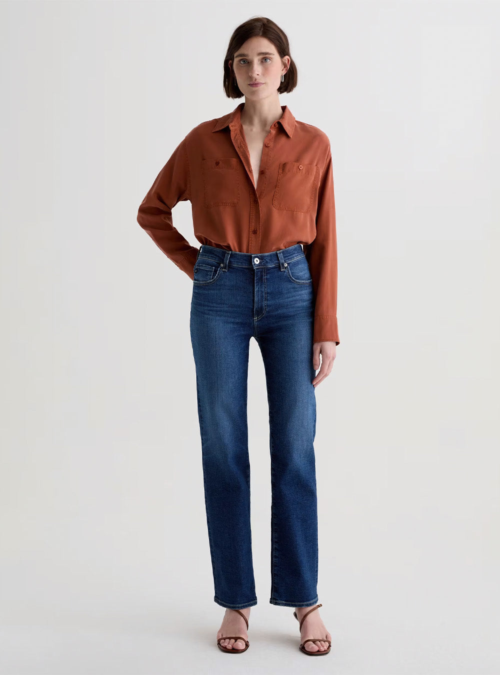 AG Brinley is a mid-rise straight-leg jean with a 29.5” inseam, crafted from 11.25 oz. Quartzblue Stretch Denim in a dark wash. It offers a classic fit with just the right amount of structure and flexibility.