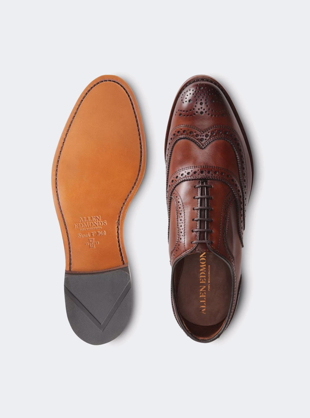 With roots that go back to the Irish countryside and a refined polish that's perfectly suited to the city streets of today, the wingtip brogue is a time-tested staple. This Allen Edmonds design combines the long, slender shape and graceful curves of their signature 65 footwear last with the supple richness of European calfskin uppers.